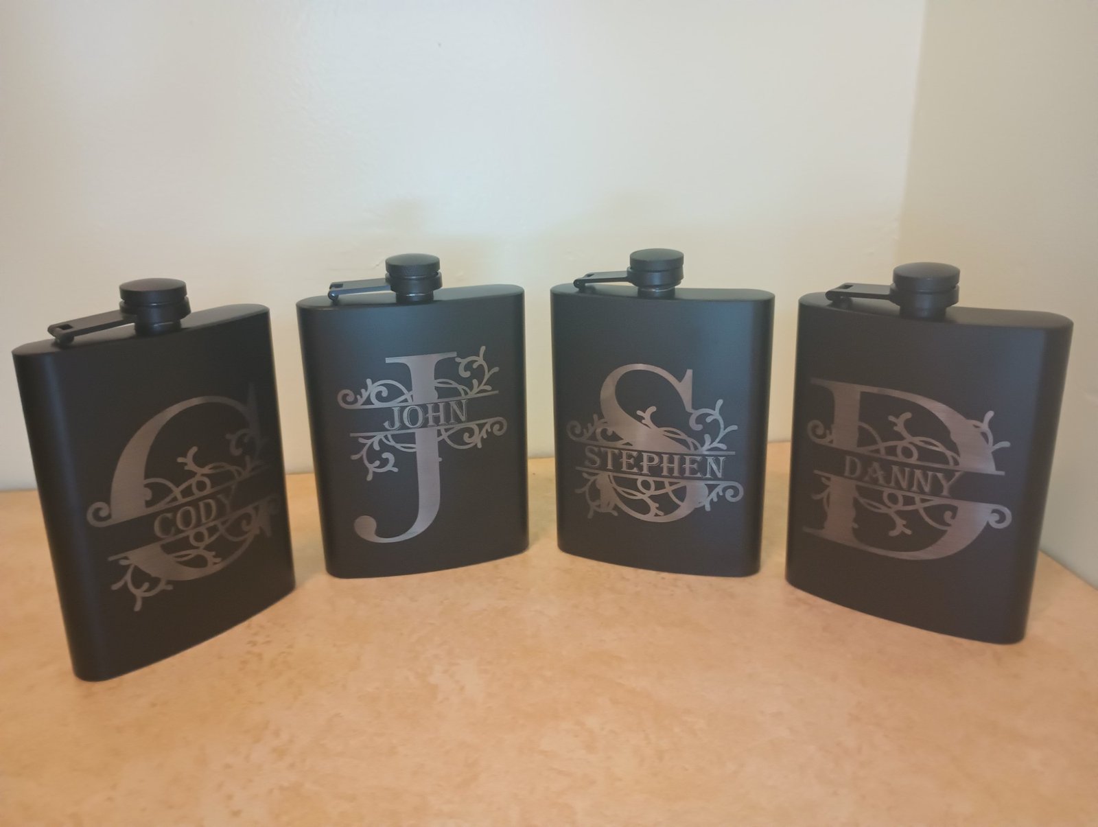 8oz Stainless Steel Hip Flask personalized just for you and the men standing by your side on the big day!
