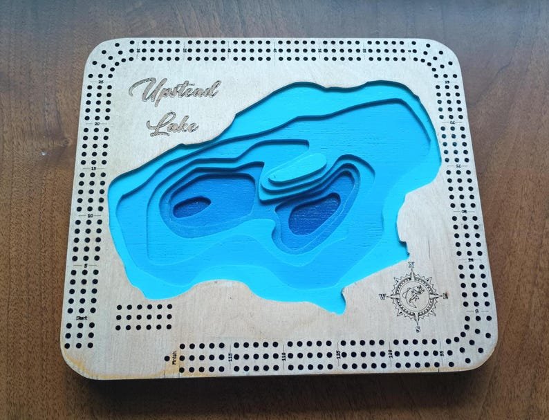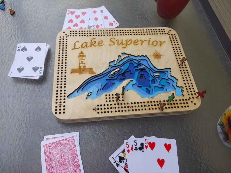 It isn’t a true midwestern function without some cribbage involved! Our lake-depth cribbage boards are sure to get everyone talking! Our cribbage boards can be made for any Minnesota or Wisconsin lake. They are layered and colored to match the depth of the lake that is showcased. They even make for pretty lake house decor! Ope, you can’t forget about the pegs – those are made in the shape of fish in classic cribbage colors!