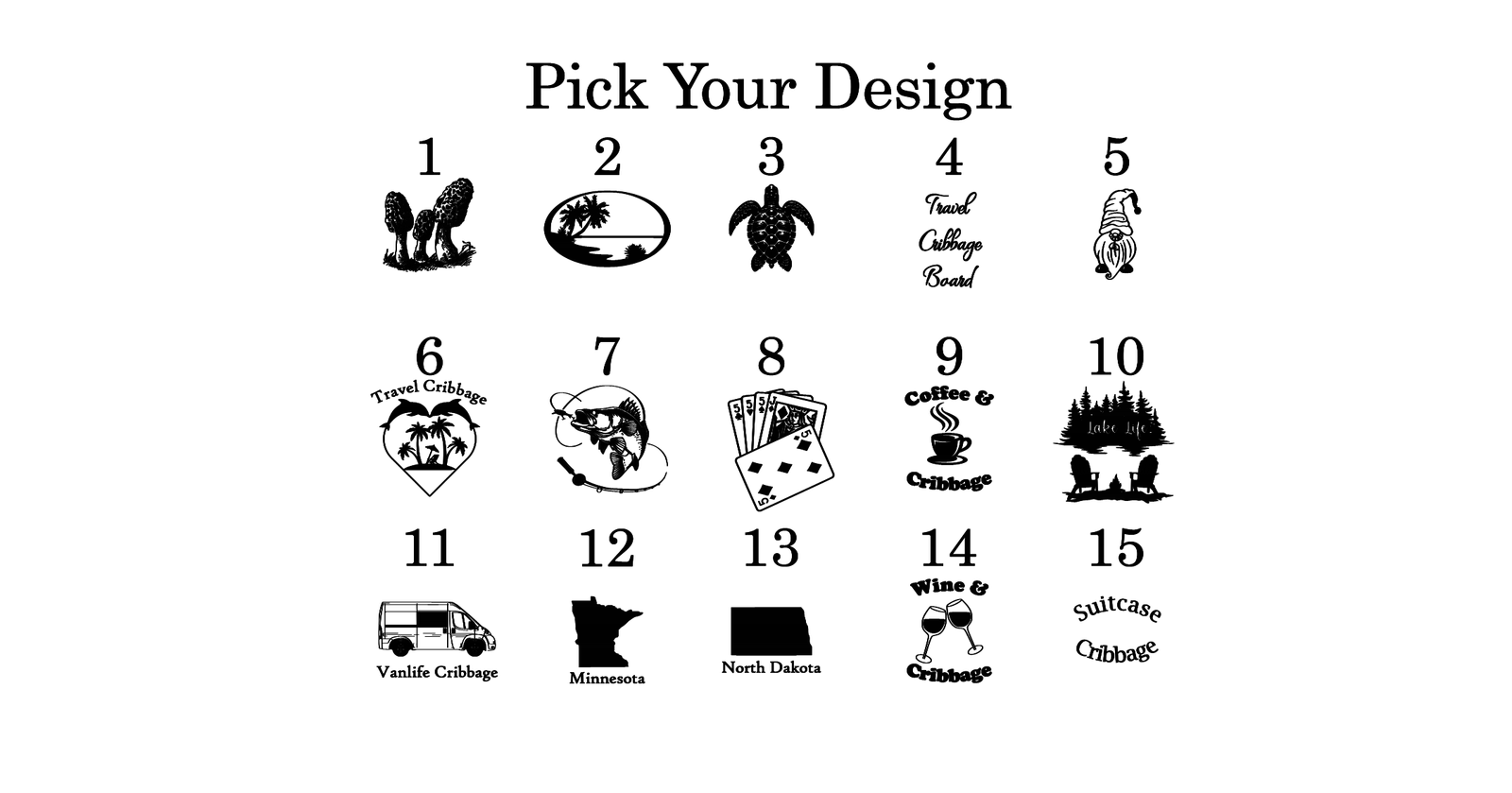 Choose from 15 unique engraved designs (see photo) to make it truly yours—perfect for campers, RV travelers, fishing trips, coffee shop games, or a cozy evening by the fire.