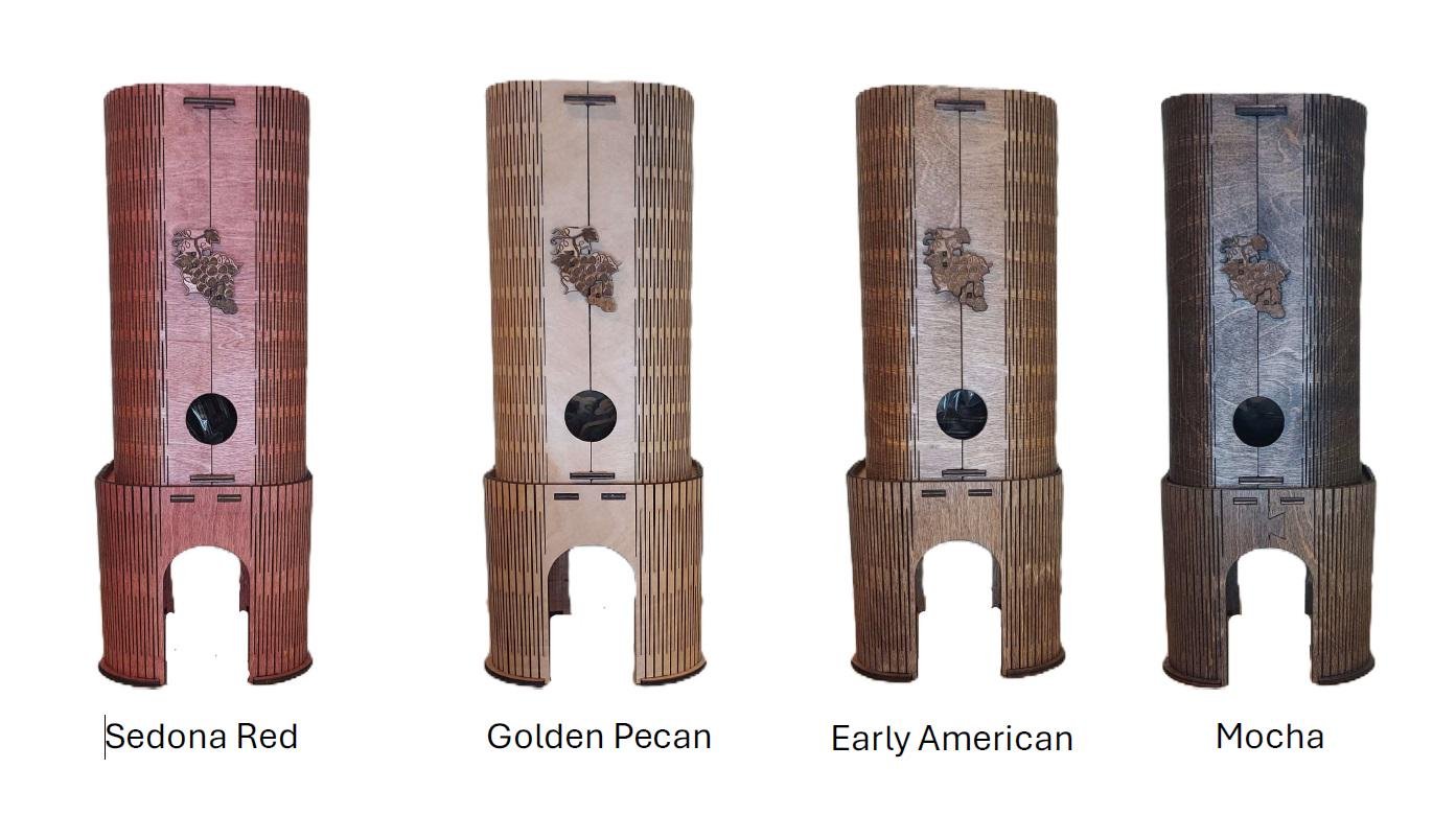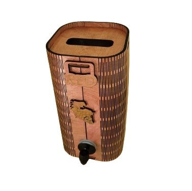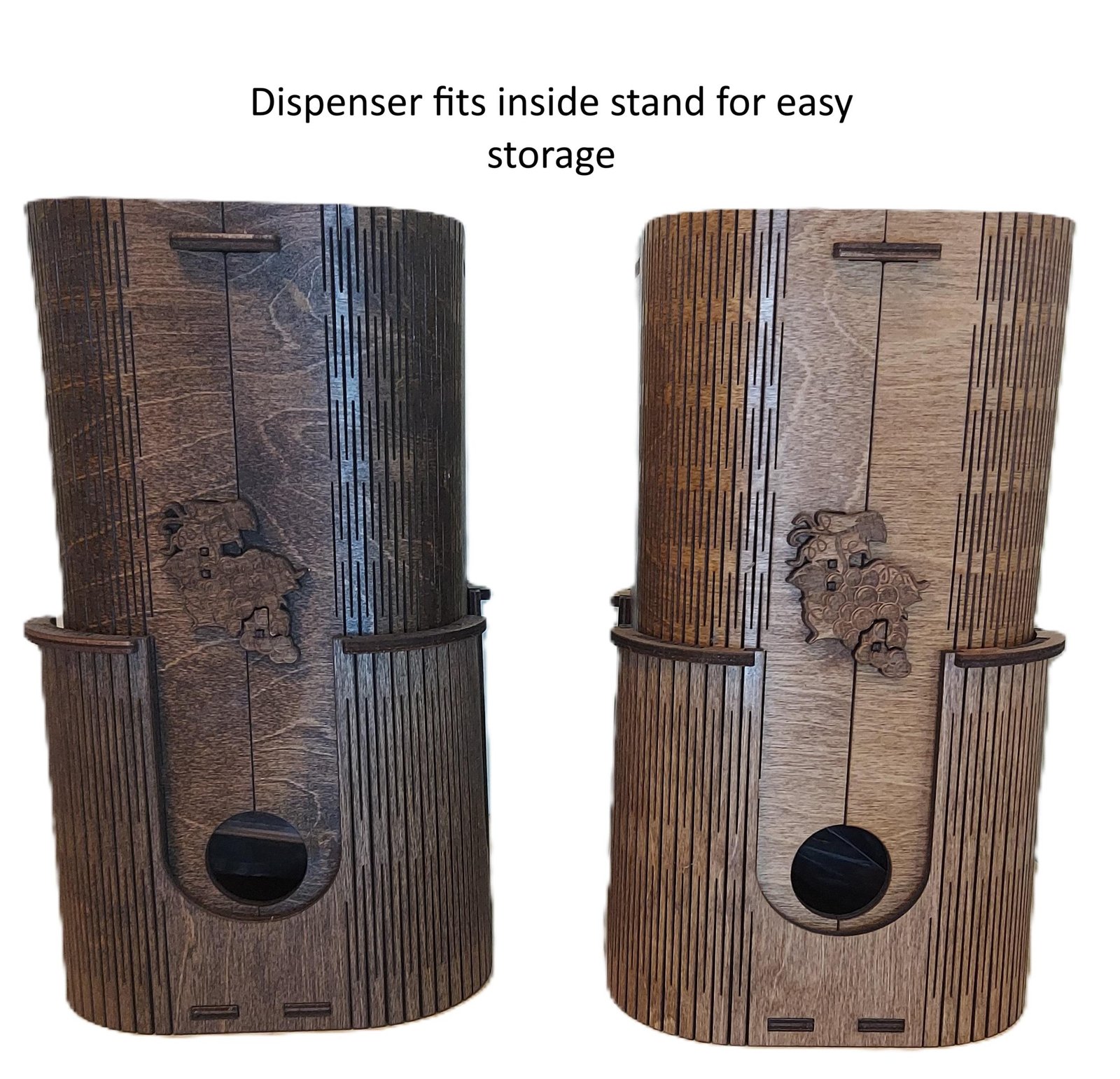 -The dispenser and stand laser cut from 1/4″ Birch plywood, stained to your specifications and sprayed with a protective clear coat to help with cleaning and durability.