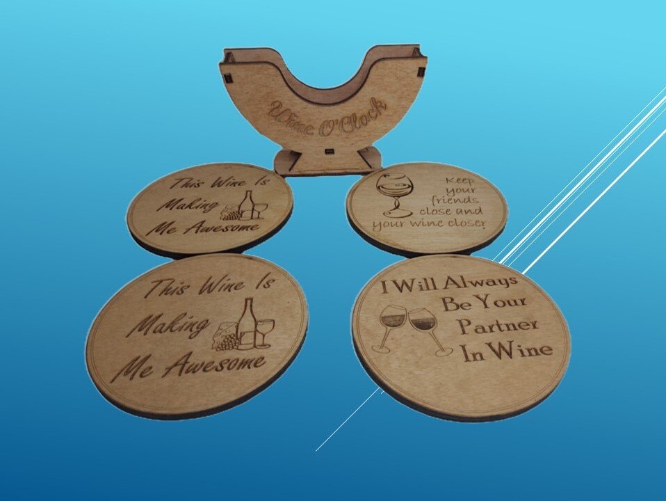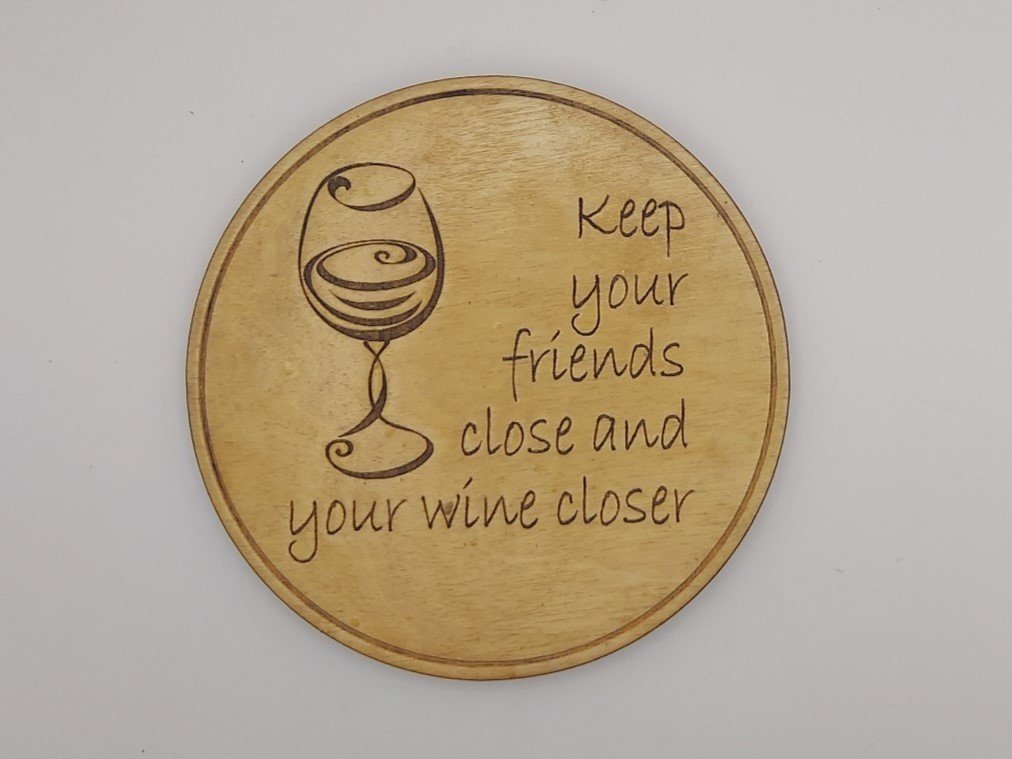 Our laser-engraved wine-themed drink coasters are the perfect addition to your cozy kitchen. Or a great gift for that special person in your life who is always saying “I need wine!!” The themed coasters with their matching wine coaster holder is both functional and pretty! They are sure to bring a smile to your face and many others!