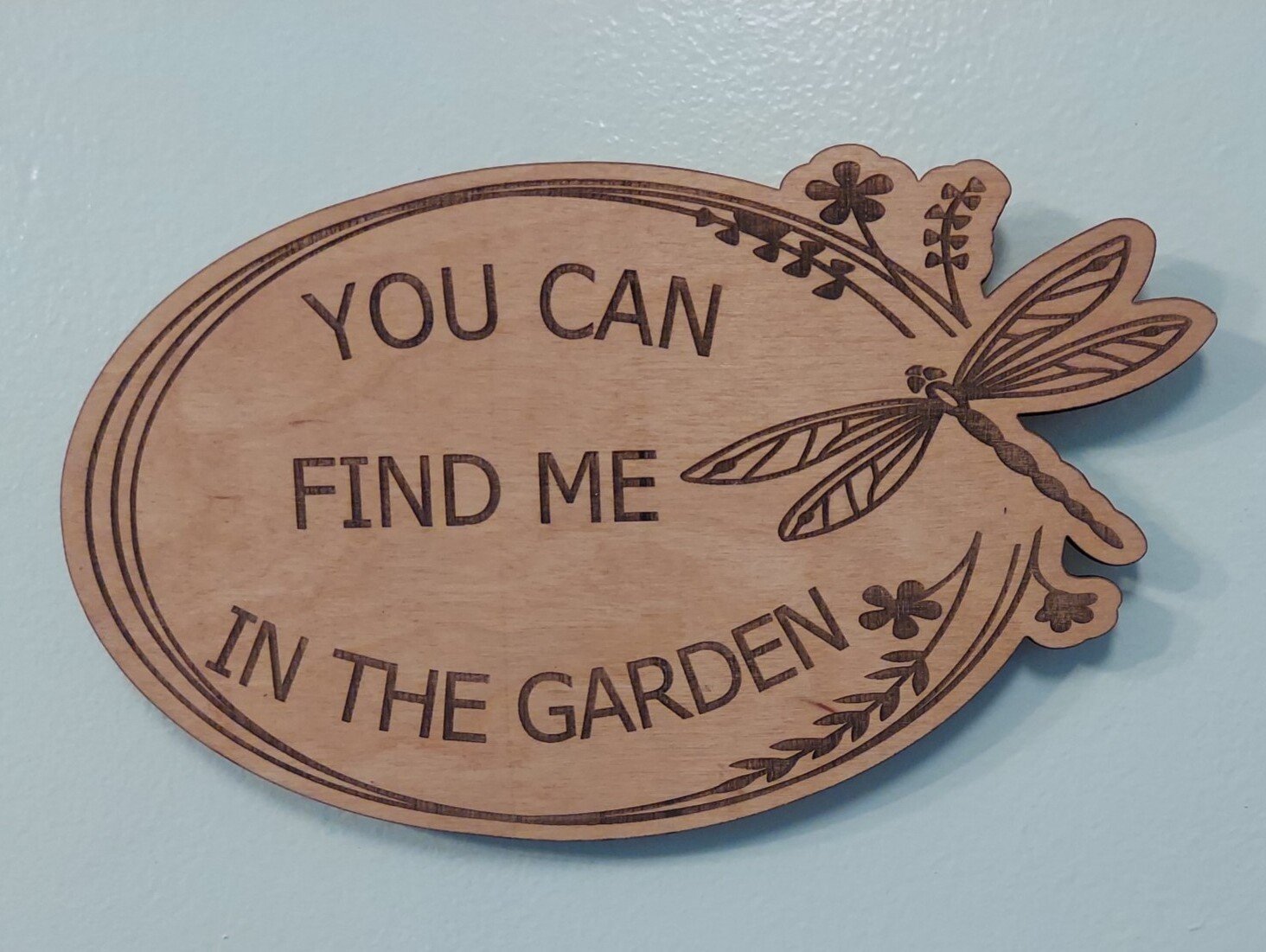 Bring a touch of rustic charm to your garden or patio with our laser-engraved wooden sign. Crafted from birch plywood and beautifully detailed with a graceful dragonfly, this 10″ wide by 6″ tall oval plaque is perfect for adding personality to your outdoor space.