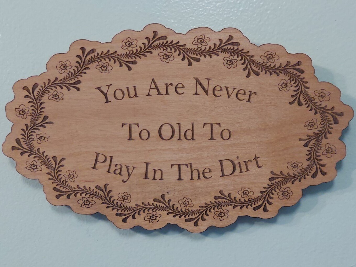 Bring a touch of nature and charm to your home or garden with our laser-engraved wooden sign. Crafted from birch plywood and beautifully detailed with an intricate floral design , this 10″ wide by 6″ tall oval plaque is perfect for adding personality to your outdoor space.